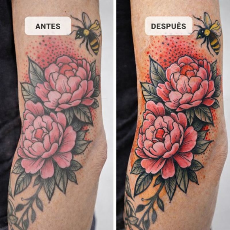 Sanara hidrata profundamente y protege los tatuajes cicatrizados, ayudando a mantener los colores vivos y la piel suave. Los resultados son visibles desde la primera aplicación, sin alterar la tinta.